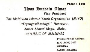 ސައުދީ އެރަބިއްޔާގައި އަޅުގަނޑު ކިޔަވަން ހުރިއިރު “މޯލްޑިވިއަން އިސްލާމިކް ޔޫތް އޯގަނައޮޒޭޝަން، (އެމް އައި ޔޫ އޯ) “މިޔޯ” ގެ ނަމުގައި ޒުވާނުންގެ ޖަމްއިއްޔާއެން އުފެއްދީމެވެ. މިޖަމްއިއްޔާގެ ރައީސަކީ، ސިއްކަގޭ މުހަންމަދު ނަސީމް (ނަސީމްބެ) އެވެ. ނައިބު ރައީސަކީ، އަޅުގަނޑެވެ. ސެކްޓަރީޖެނެރަލަކީ، އޮސްޓްރޭލިޔާގައި މިހާރު ހުންނެވި، ޕްރޮފެސަރ އަބްދުﷲ ސައީދެވެ.